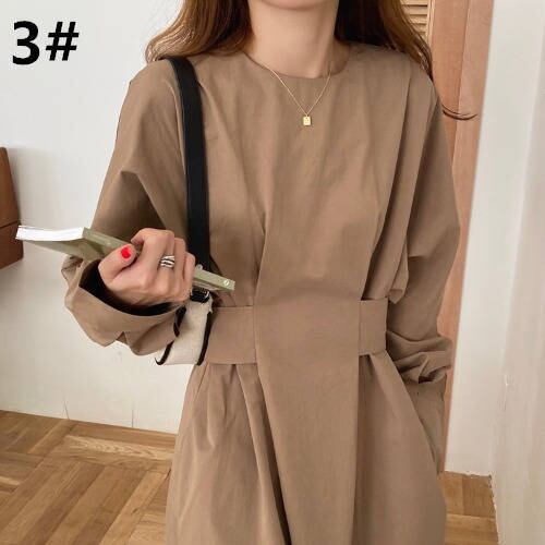 2023秋新作 韓国風 ワンピース 長袖 ラウンドネック 着回し 体型カバー レディース エレガント