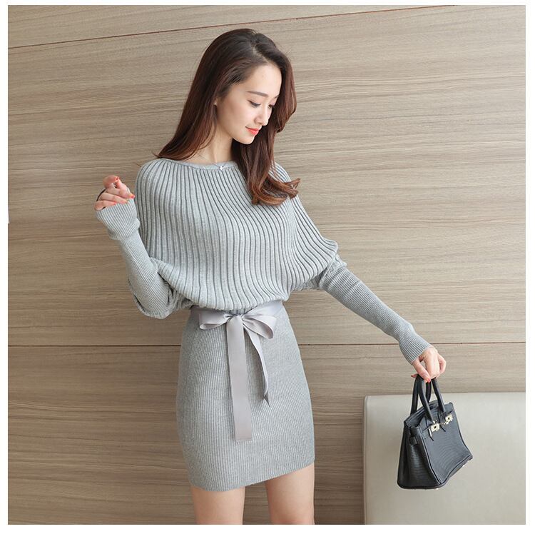 ニットワンピース 丸首ワンピース 長袖ワンピース 膝丈ワンピース 無地 おしゃれ