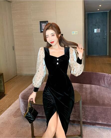 秋冬のベーススカート付きレディースドレス