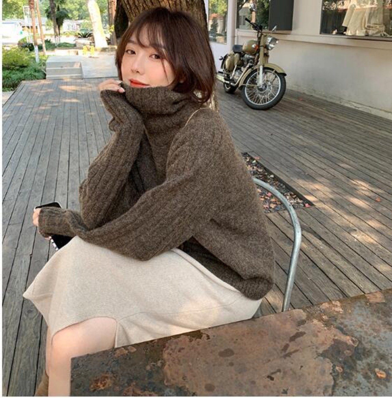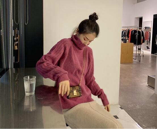 秋冬セーターレディース長袖ニットトップスウールャツ秋冬長袖高領.
