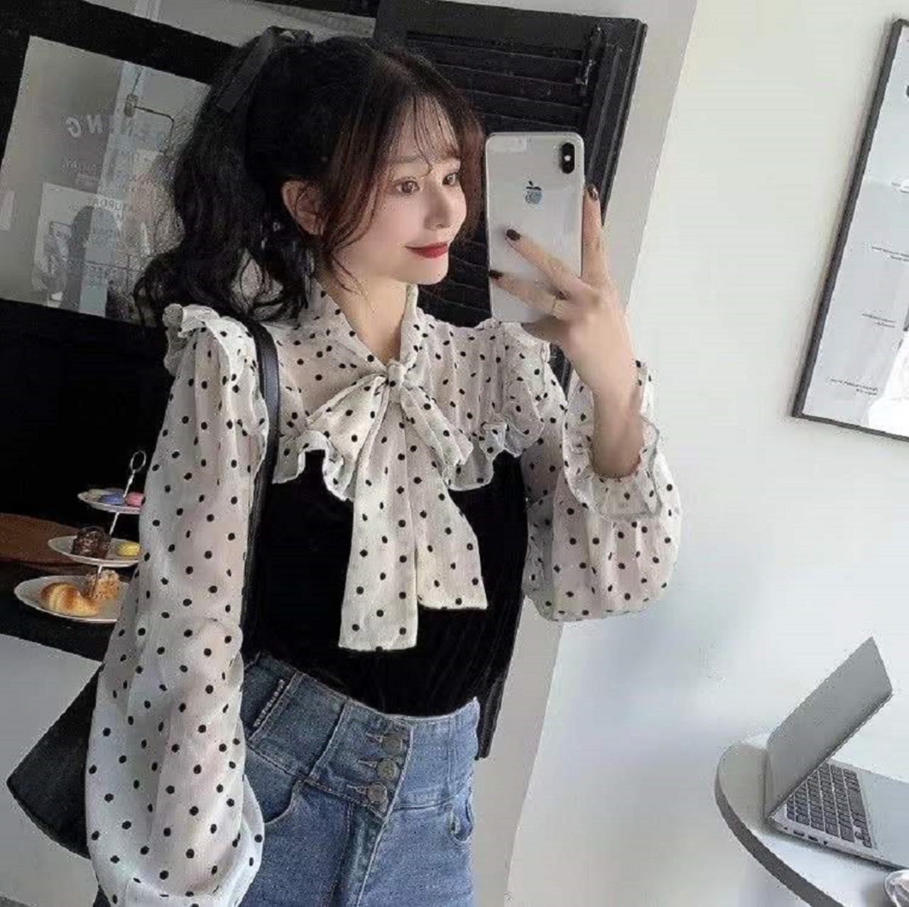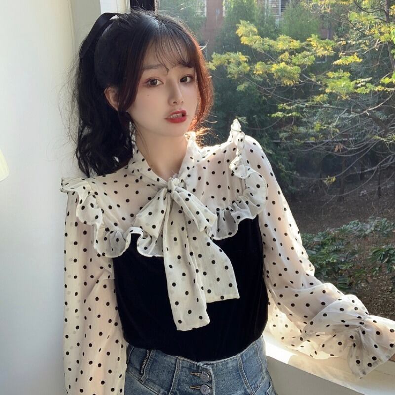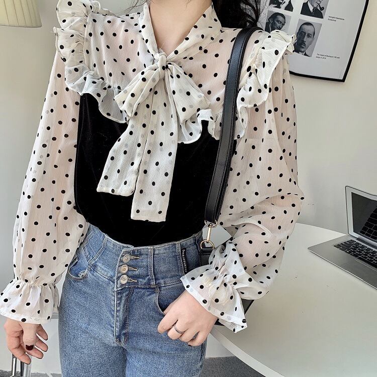トップス★ 水玉★長袖★♪秋冬♪シフォンシャツ★♪♪レディース服★日系★