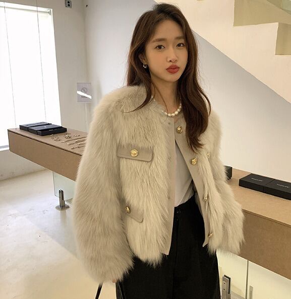 ファーコート 長袖 切り替え 体型カバー 着痩せ ショット丈 sweet系 起毛コート ジャケット