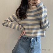全3色 ニット 長袖 切り替え バイカラー ショット丈 カットソー ボーダー柄 シンプル カジュアル