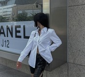 シャツ ブラウス 透け編み シャーリング 切り替え 体型カバー 着痩せ シンプル