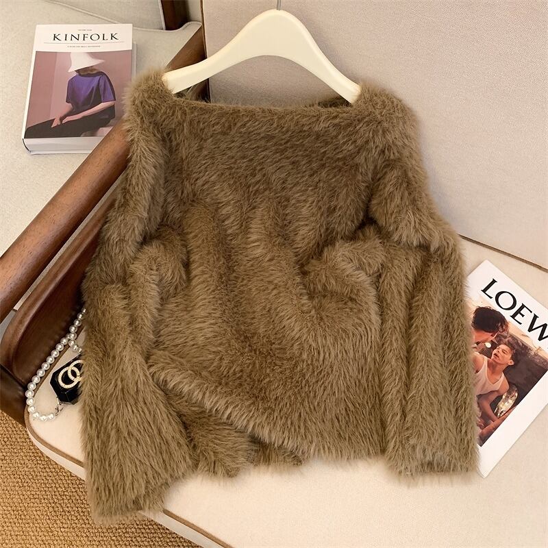 ニット 厚手 長袖 体型カバー 着痩せ カットソー sweet系 カットソー 羽織り トップス