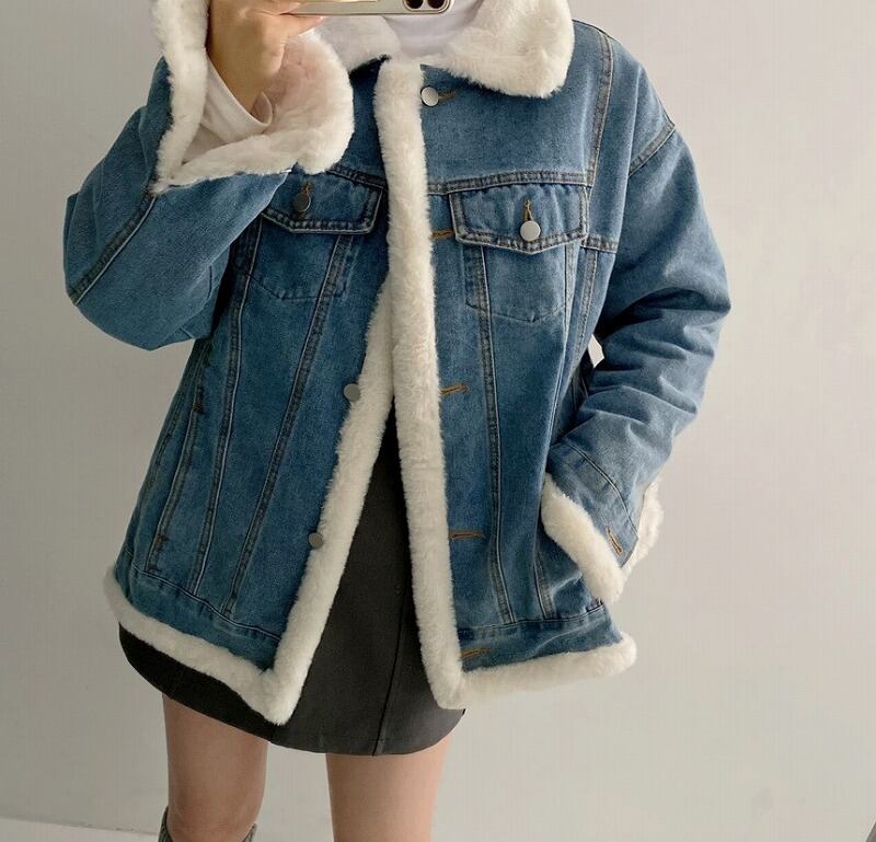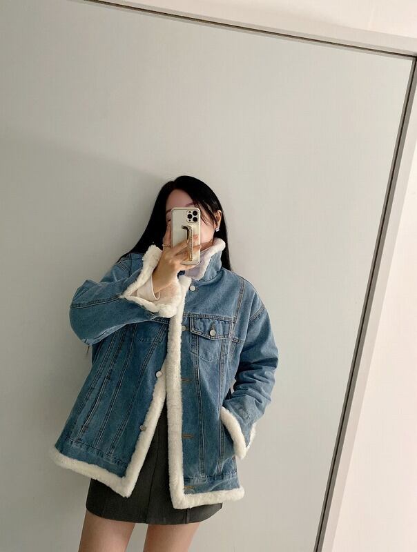 Gジャン ジージャン ジーンズ 裏ボア付き 長袖 切り替え 体型カバー 着痩せ デニム シンプル デニムジャケット コート 裏起毛