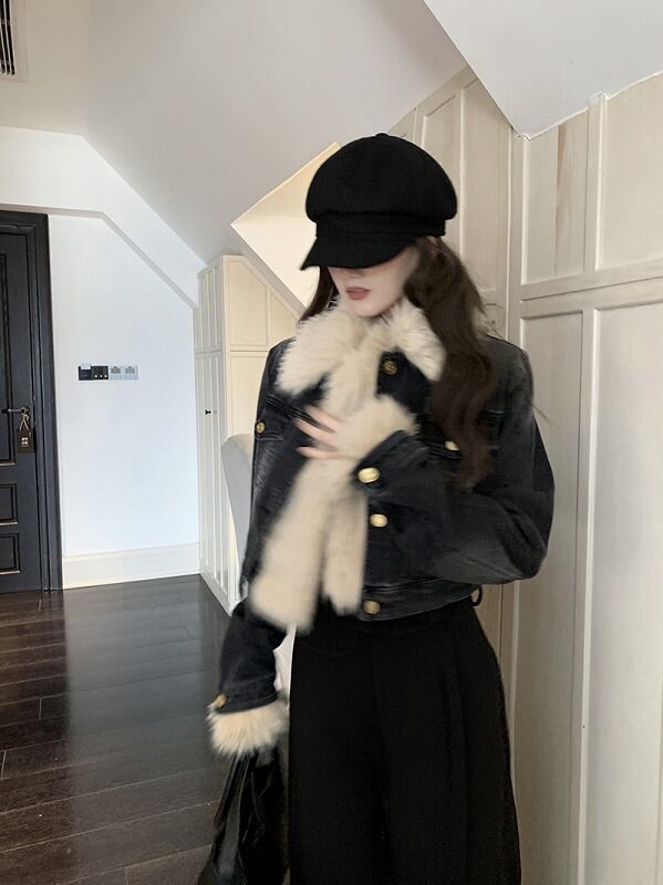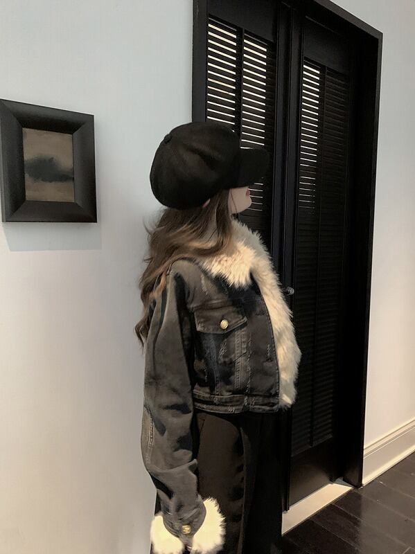 Gジャン ジージャン ジーンズ 厚手 長袖 ファー付き 切り替え デニム シンプル デニムジャケット コート モコモコ