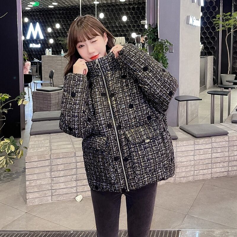 全2色 ダウンジャケット 厚手 切り替え 体型カバー 着痩せ シンプル