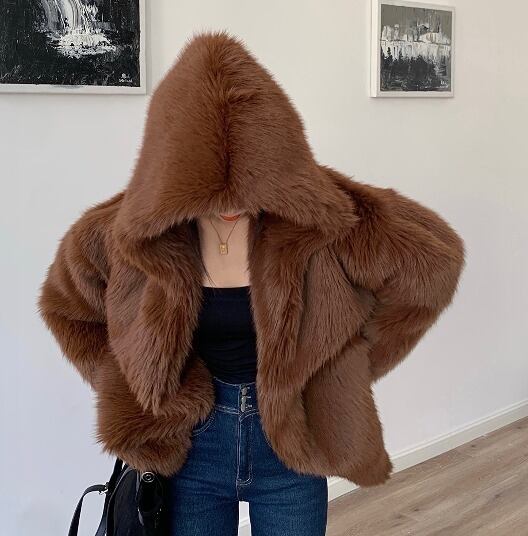ファーコート 切り替え 体型カバー 着痩せ 帽子付き シンプル 起毛コート フード付