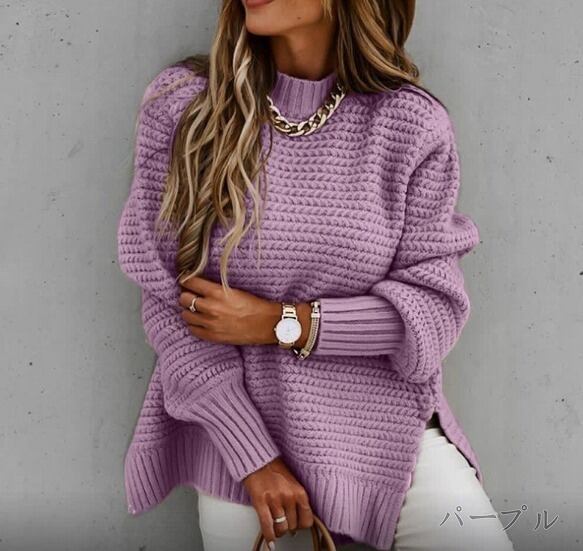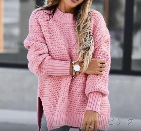 全6色 ニット 長袖 体型カバー 着痩せ カットソー シンプル カジュアル