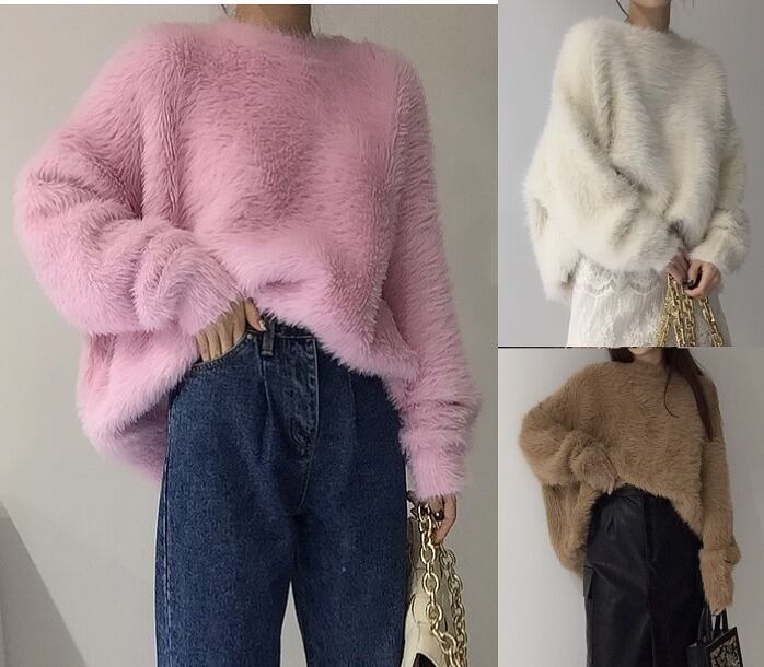 全3色 ニット 厚手 長袖 体型カバー 着痩せ シンプル カジュアル