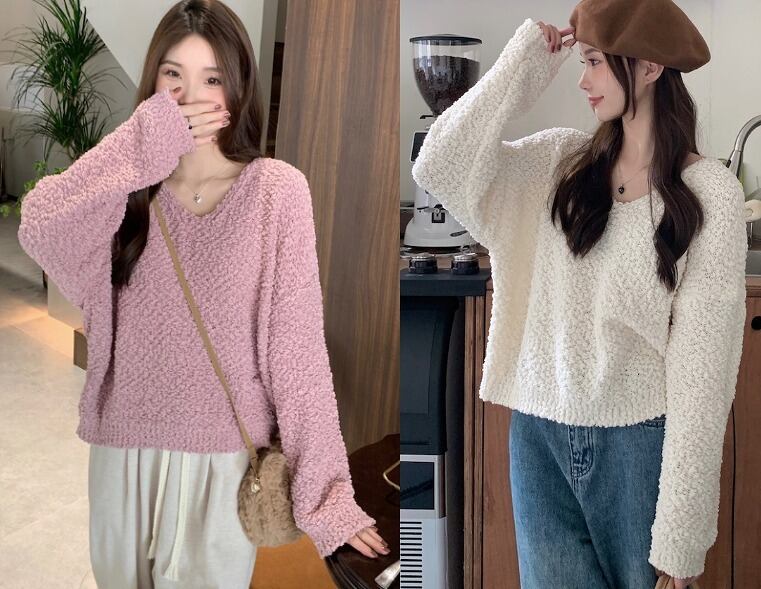 全2色 ニット 長袖 体型カバー 着痩せ カットソー シンプル カジュアル