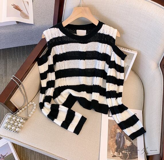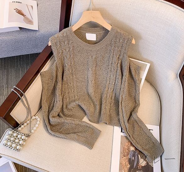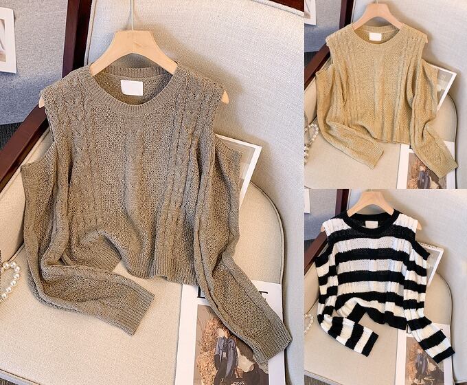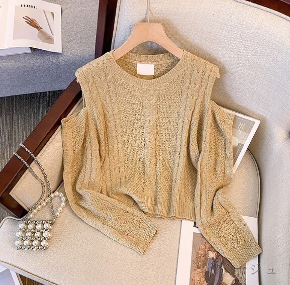 全3色 ニット オフショルダー 長袖 体型カバー 着痩せ カットソー シンプル カジュアル