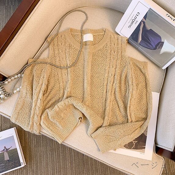 ニット オフショルダー 長袖 体型カバー 着痩せ カットソー シンプル カジュアル カットソー 羽織り トップス 肩あき 肩出し 肩見せ