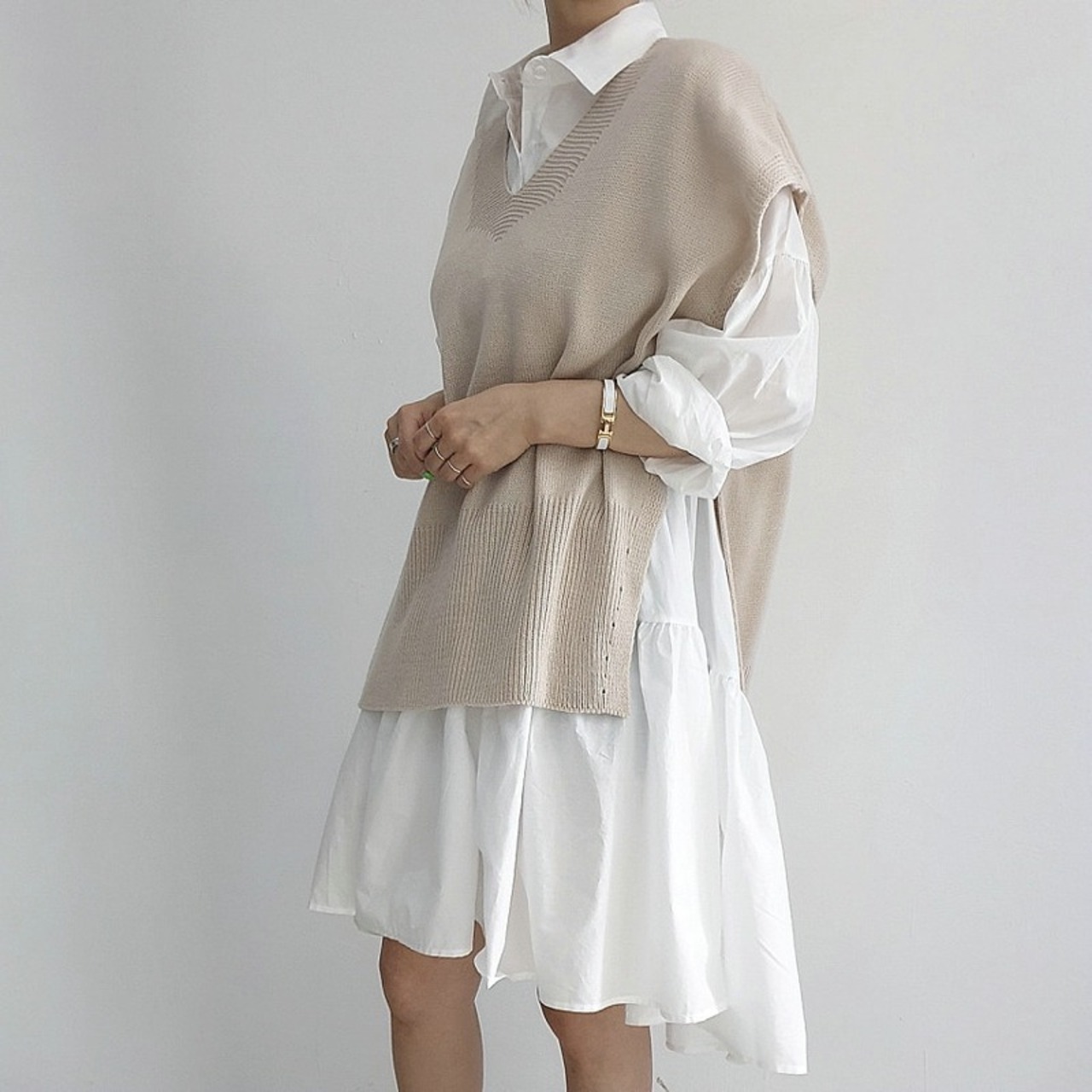 ニットタンクトップ ニットベスト 体型カバー 着痩せ カットソー シンプル カジュアル カットソー 羽織り トップス