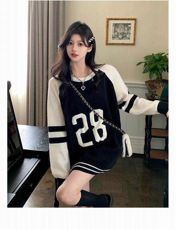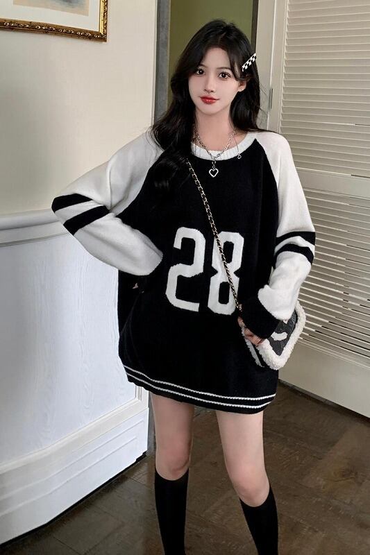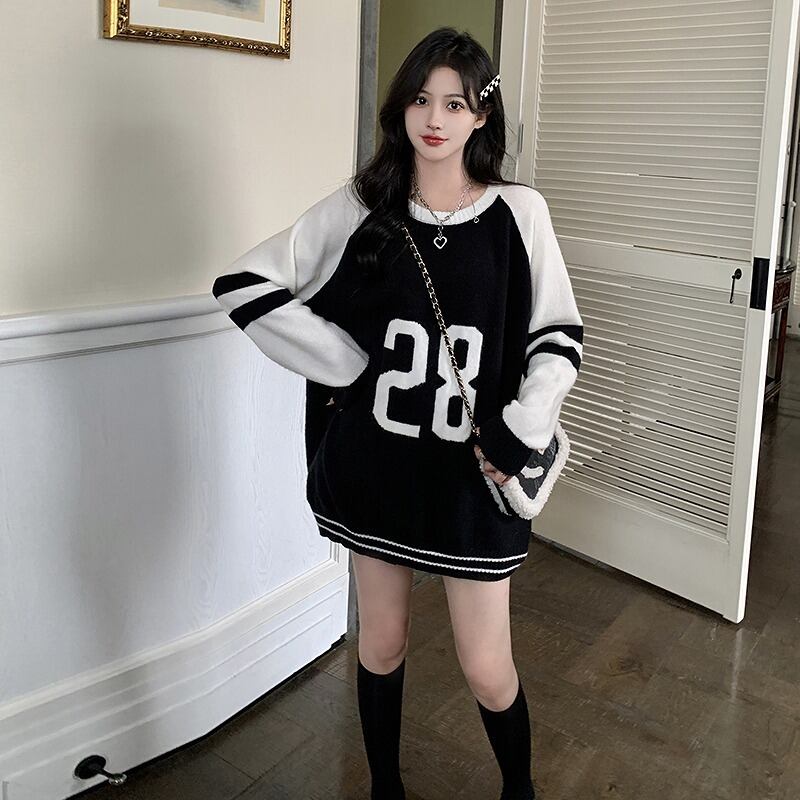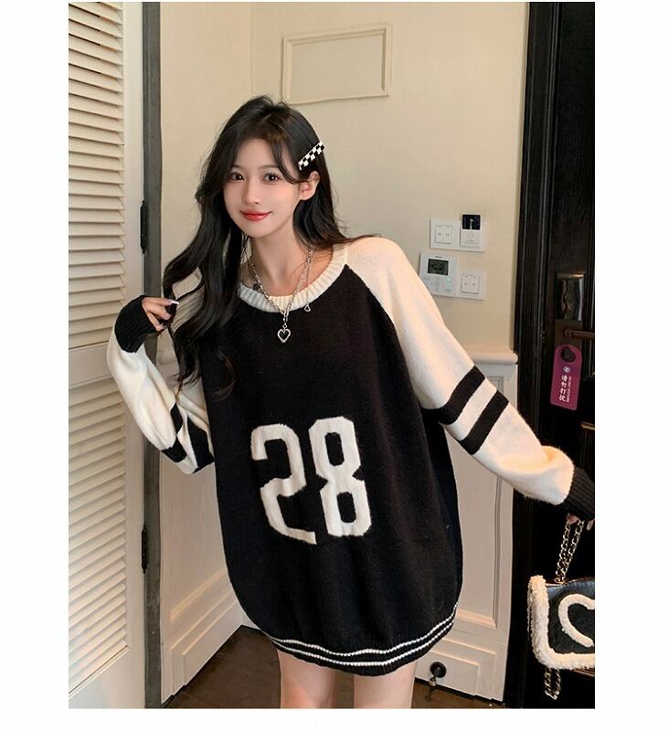 ニット 厚手 長袖 バイカラー 体型カバー 着痩せ カットソー カジュアル カットソー 羽織り トップス 配色