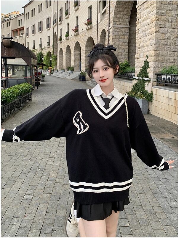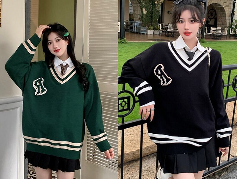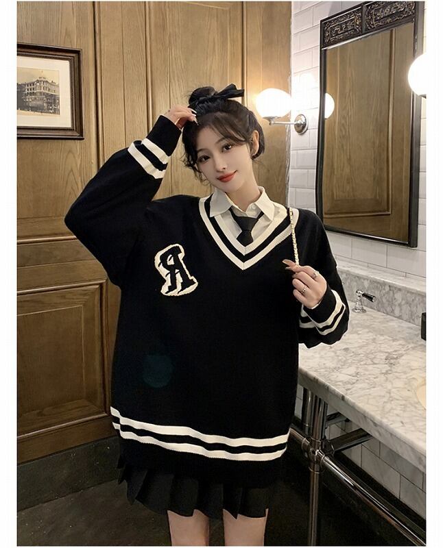 ニット 厚手 長袖 バイカラー 体型カバー 着痩せ カジュアル カットソー 羽織り トップス 配色