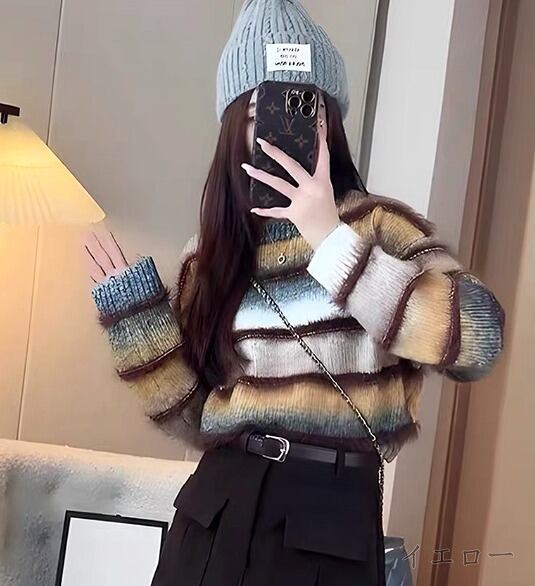 全2色 ニット 厚手 長袖 バイカラー 体型カバー 着痩せ カジュアル