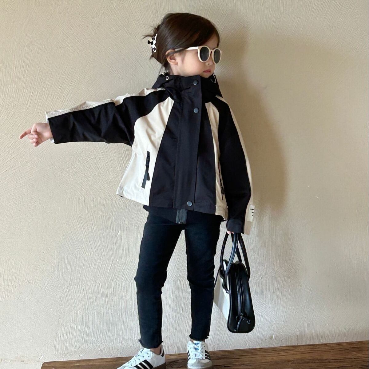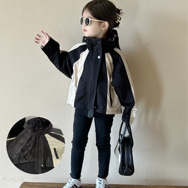 2023冬新作子供服韓国風子供服おしゃれなフード付きカラーブロックジャケット男の子女の子用中綿ジャケット